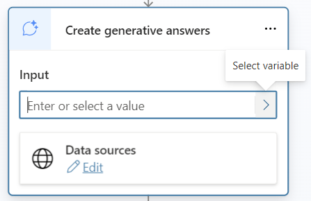 As input for this generative answer, I want the last thing the user asked in the chat to be used. This can be done by using the system variable Activity.Text. Click on the arrow to the right in the input field.
