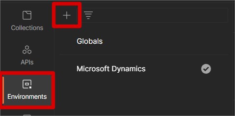 The easiest way is to first create a new environment for this in Postman. Let’s call our environment “Microsoft Dynamics”.
