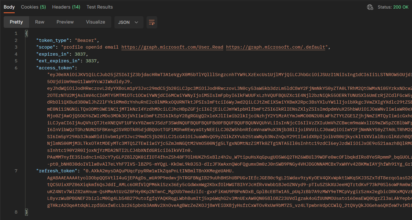 https://graph.microsoft.com/.default. Please notice that you don’t have to add offline_access anymore to this scope because the type of call to this endpoint always returns a new refresh token.