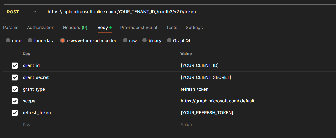 So how do we do that? We can do this by doing a post request to the token endpoint with the following body: